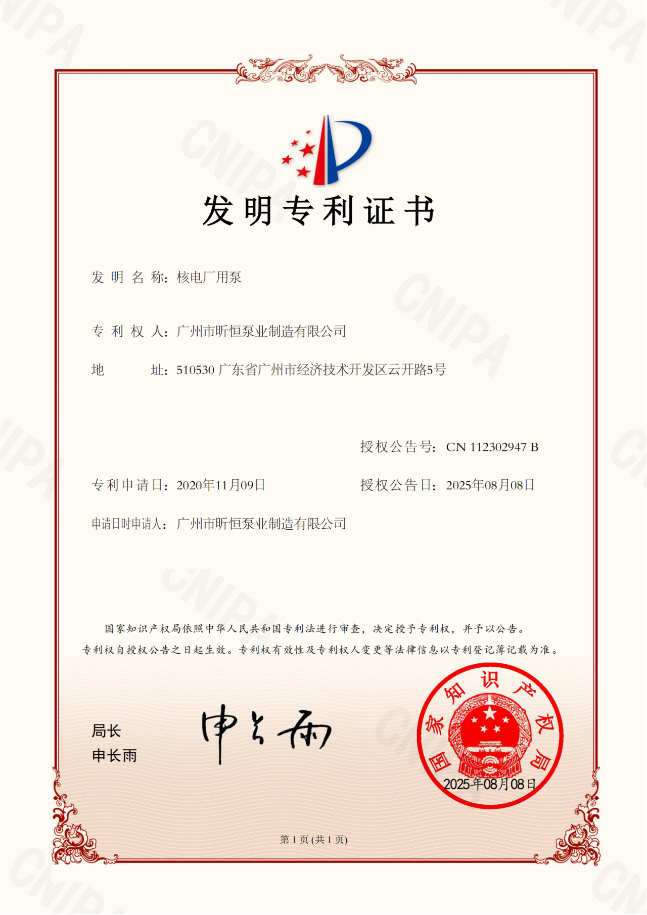 Good News | Xinheng Pump Industry's Pump and Pump Unit Technologies for Nuclear Power Plants Awarded National Invention Patent Authorization